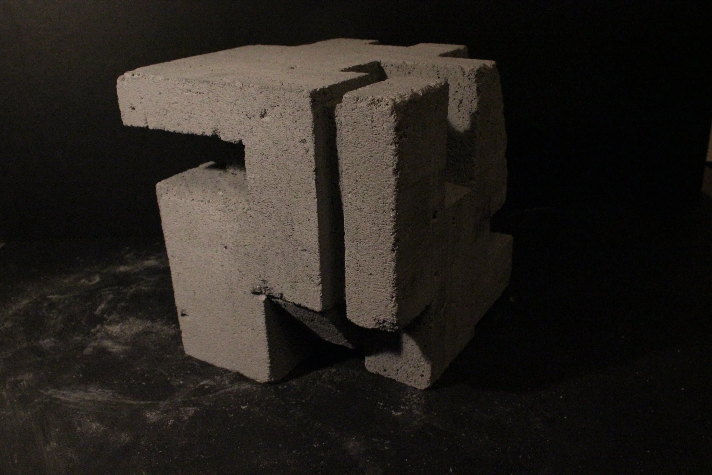 A personal project that required a sculptural piece to be crafted to take onboard the brutalist architecture of London and specifically Thamesmead, that was due for demolition and re-development. This sculpture was hand-carved to capture a material fragment of Thamesmead. The sculpture can rest on any face to show a unique form derived from this architecture thus changing its form and function.