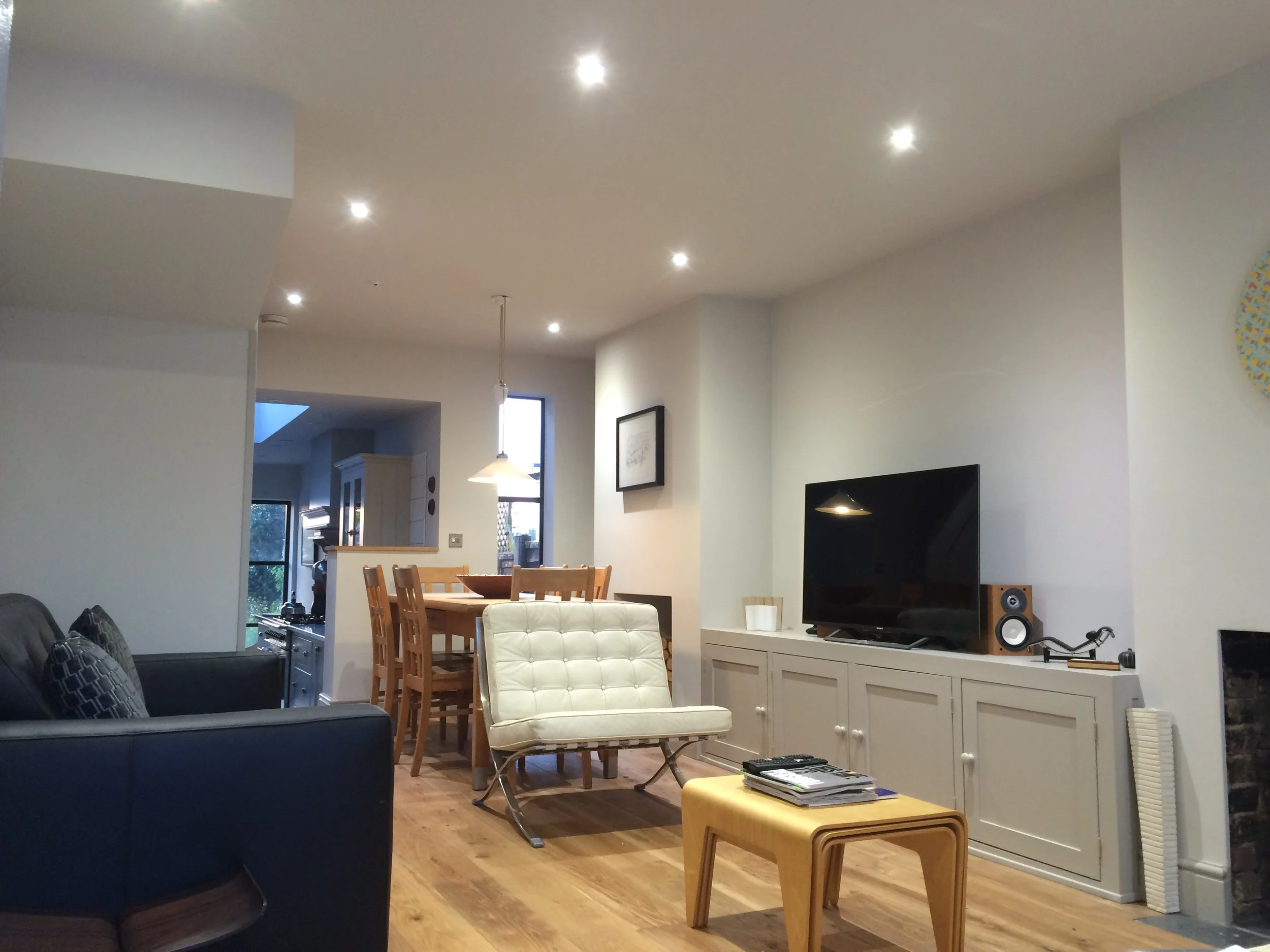 The final design successfully accomplished the clients' desire for an open plan ground floor, complemented by a generous rear extension housing their dream kitchen. Upstairs, a bedroom and bathroom were incorporated, while the roof space underwent a transformation, serving as a versatile loft area capable of fulfilling various functions such as an art studio or an additional bedroom, should the need arise.